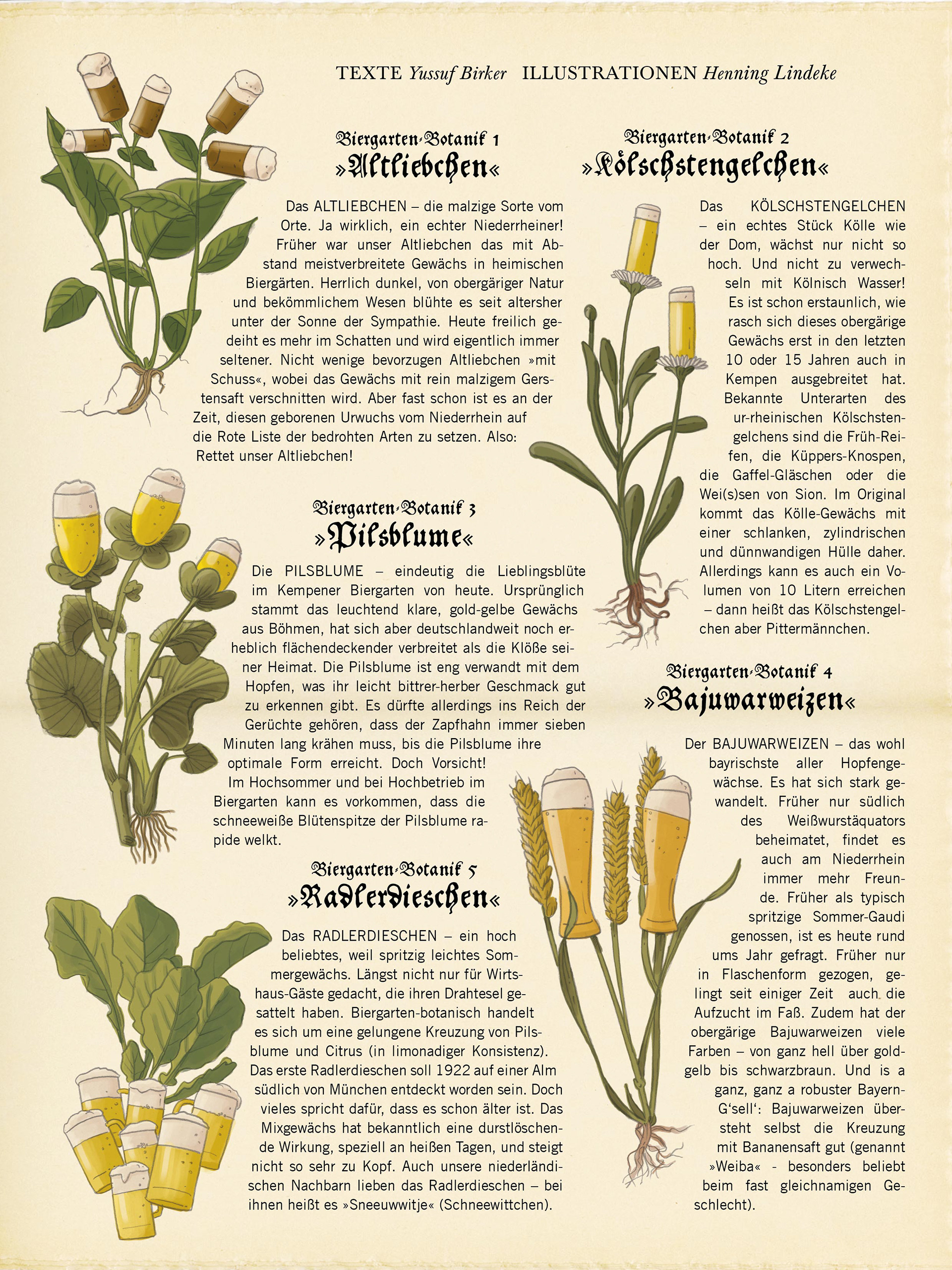 Illustrationen zur Biergarten-Eröffnung am Niederrhein. Texte: Hans Josef »Yussuf« Birker.