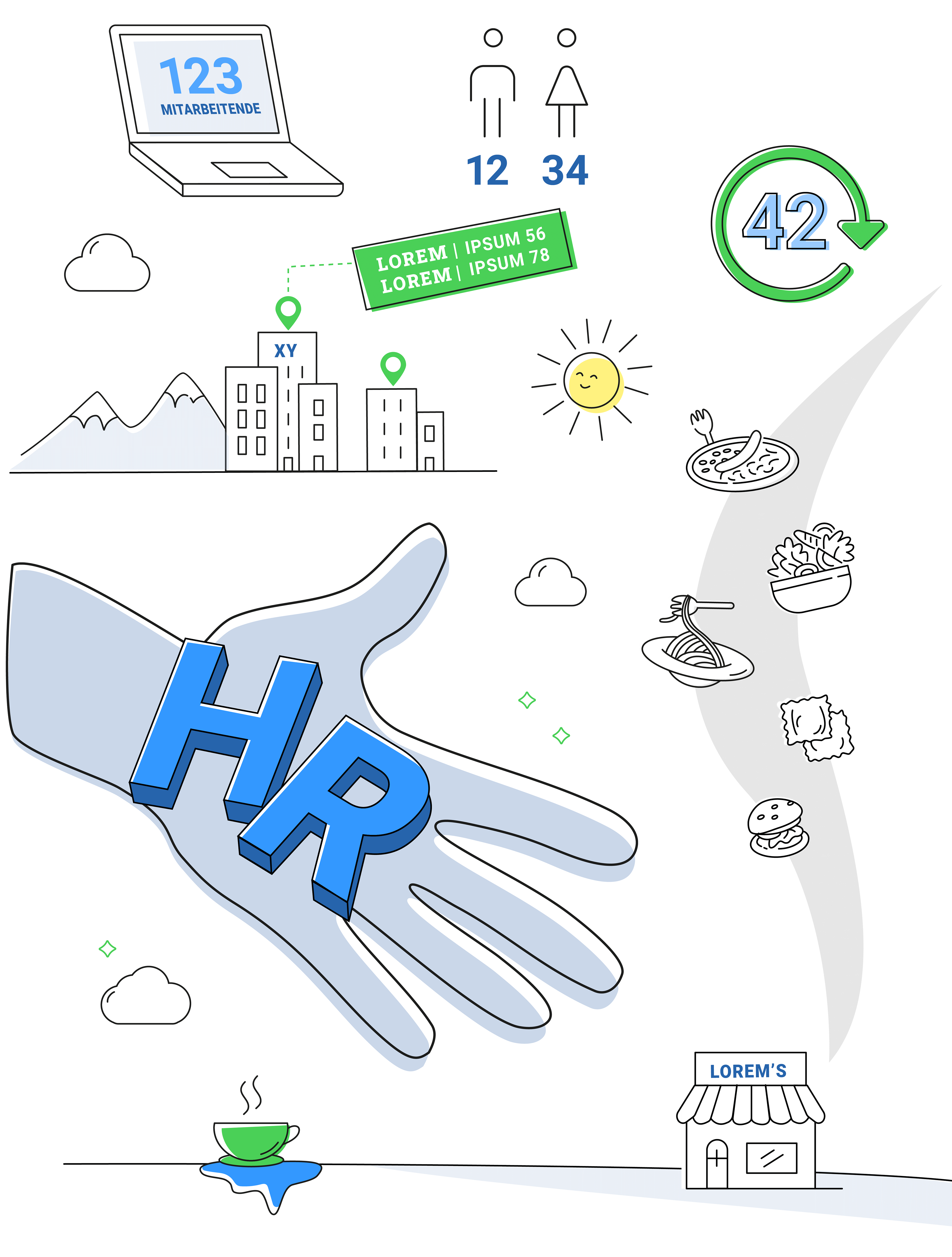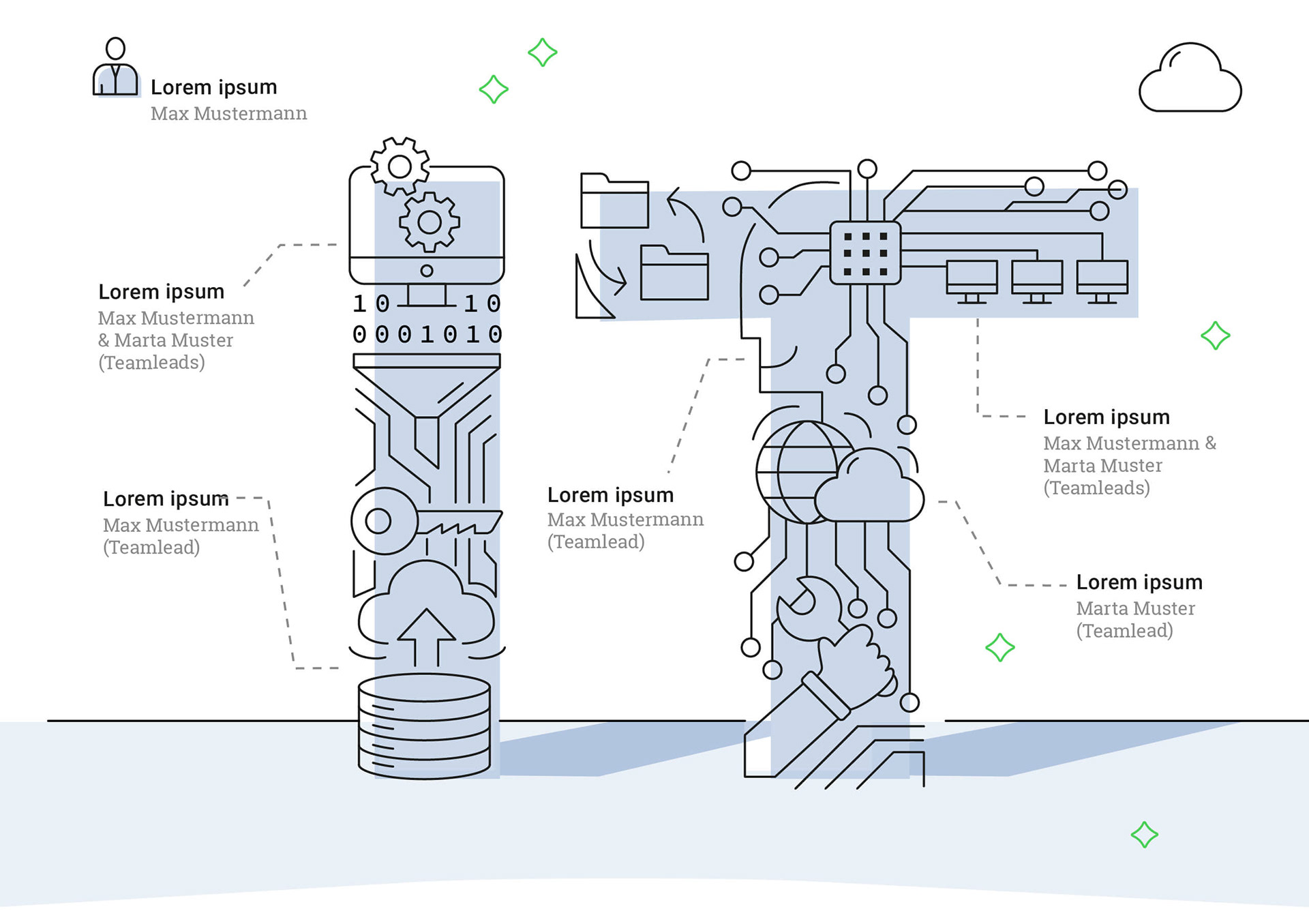 Hier ein paar Ausschnitte aus Infografiken, die ich zum Thema »Vorstellung der verschiedenen Abteilungen« eines Unternehmens erstellt habe.