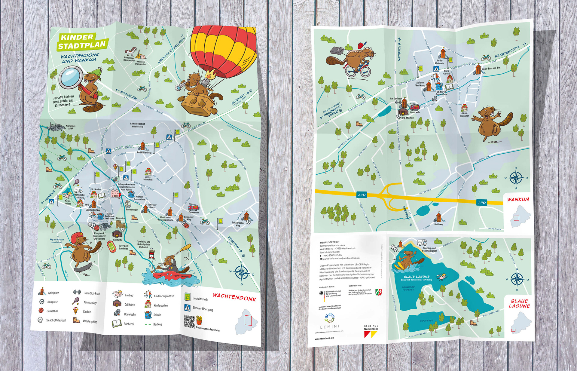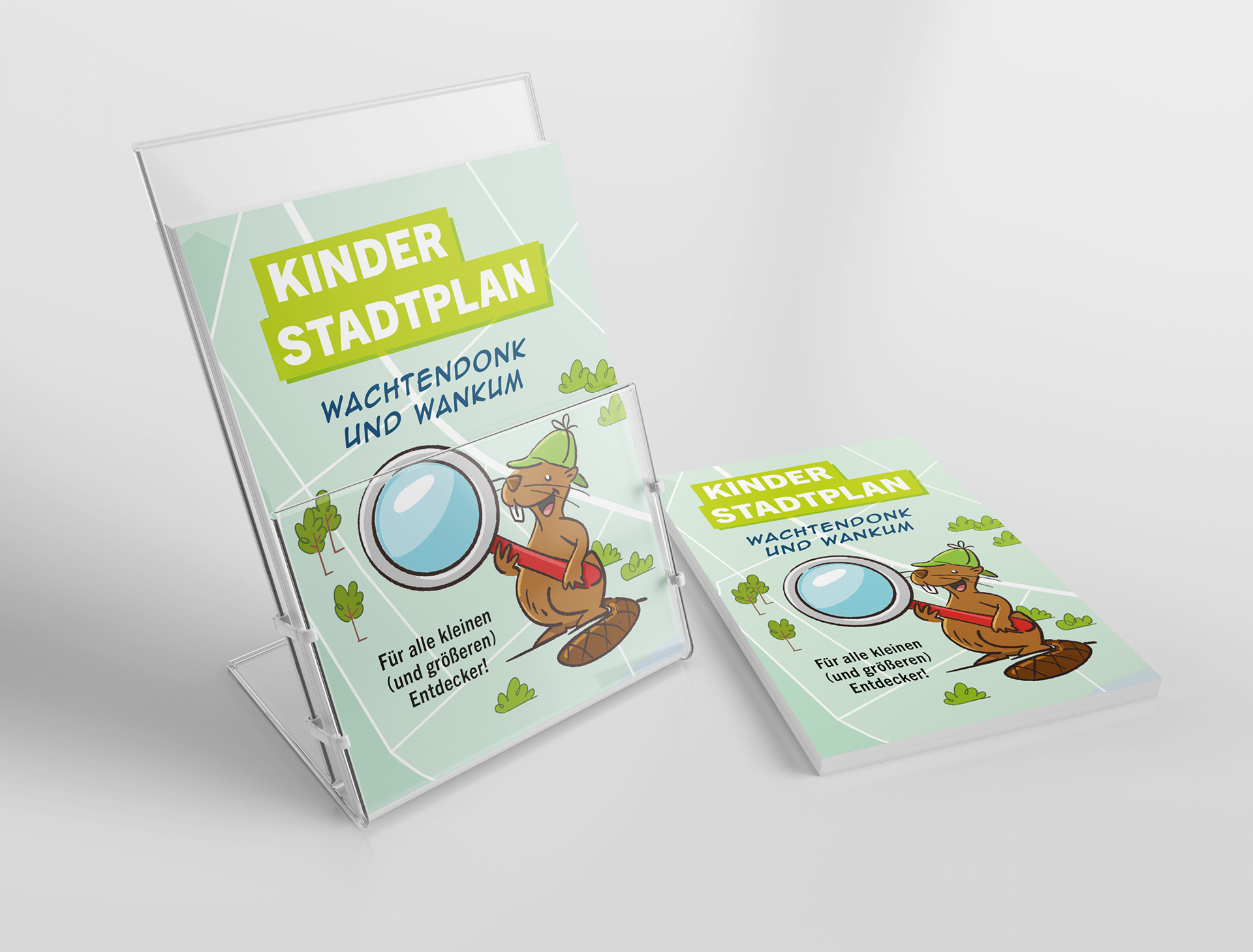 Für die Stadt Wachtendonk durfte ich in diesem Jahr einen Kinderstadtplan entwickeln und illustrieren. Was Kinder in der Niersgemeinde alles entdecken und erleben können, zeigt ihnen die Sympathiefigur, der Biber …